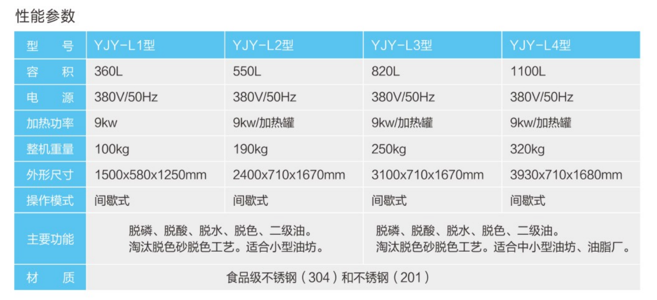 ★采用不銹鋼材質,可實現油品的脫磷、脫酸、脫水功能,根據用戶需要還可以進行恒溫脫色。